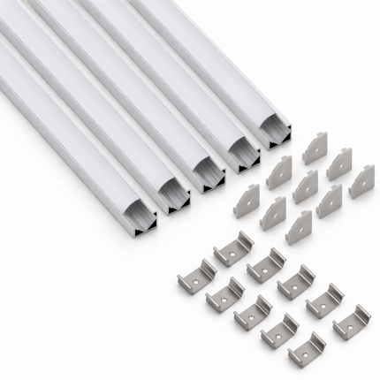 10’lu Set Köşe LED Profil Kanal 18x18mm 1 Metre Alüminyum Sıva Üstü LED Şerit Kanalı Opak Kapaklı Tutuculu 8987