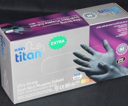 Koin Titan Extra Siyah Nitril Muayene Eldiveni Pudrasız Ultra Strong Medium M