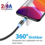 3’ü 1 Arada Manyetik Şarj Kablosu Seti iPhone iPad Samsung USB-C & Lightning 2.4A 100cm Gri