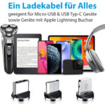 3’ü 1 arada şarj seti manyetik tak çıkar Apple iPhone iPod iPad Samsung modelleri lightning USB-C için şarj kablosu gri 2.4A 100cm