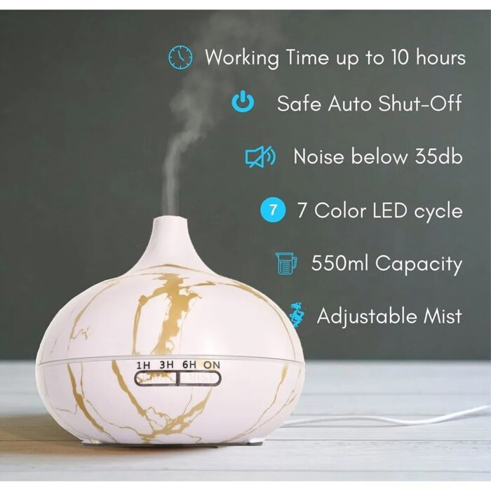 Aroma Terapi Oda Hava Nemlendirici Difüzör – 550ml, 7 Renk LED Işıklı