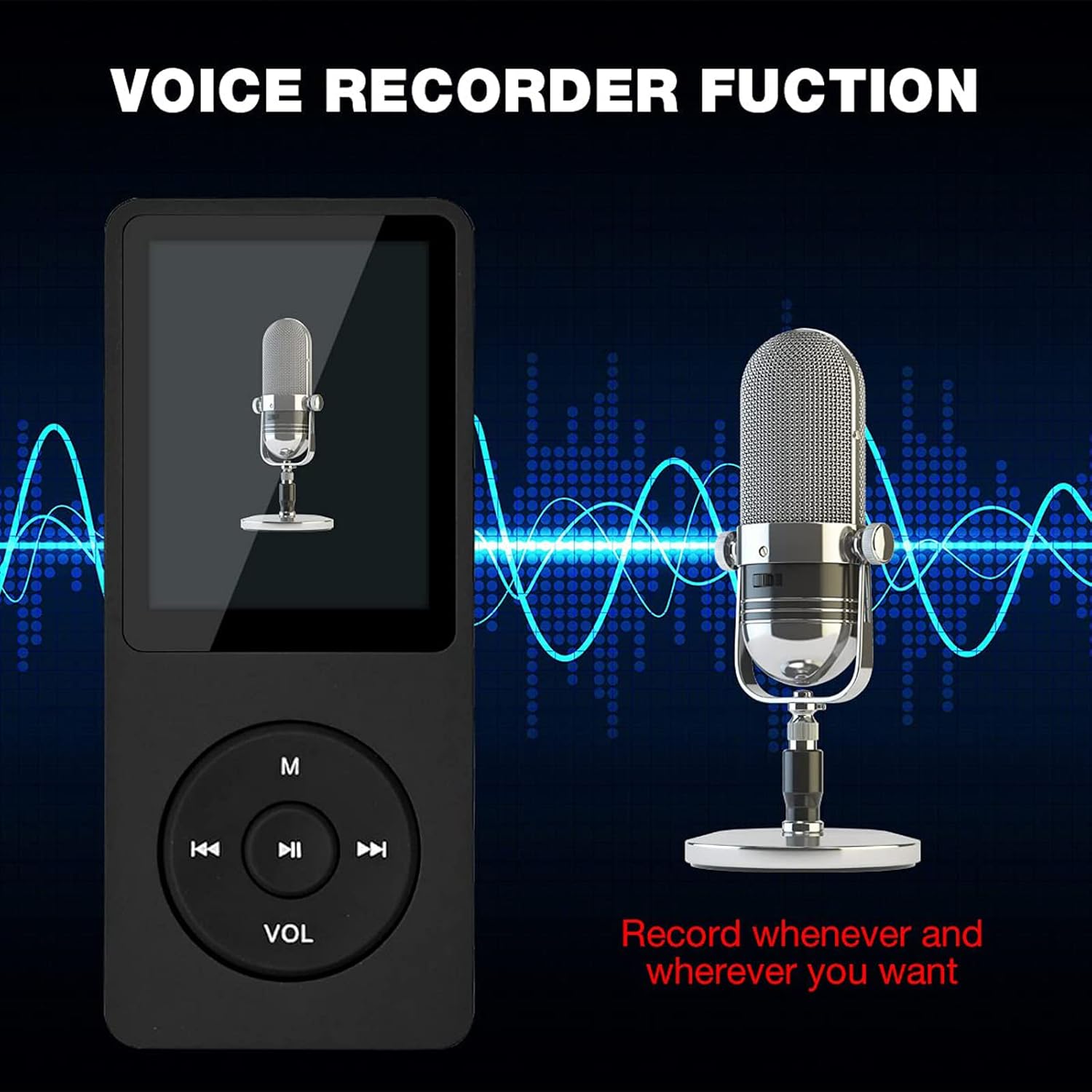 Bluetooth MP4 Çalar – Taşınabilir MP3 MP4 Müzik Oynatıcı Ses Kayıt Radyolu Sarjlı Dahilı Hoparlör ve Kulaklık Ekranlı 8Gb Hafızalı Siyah