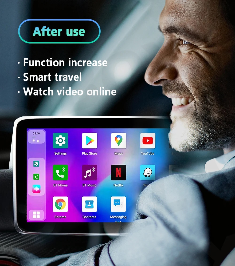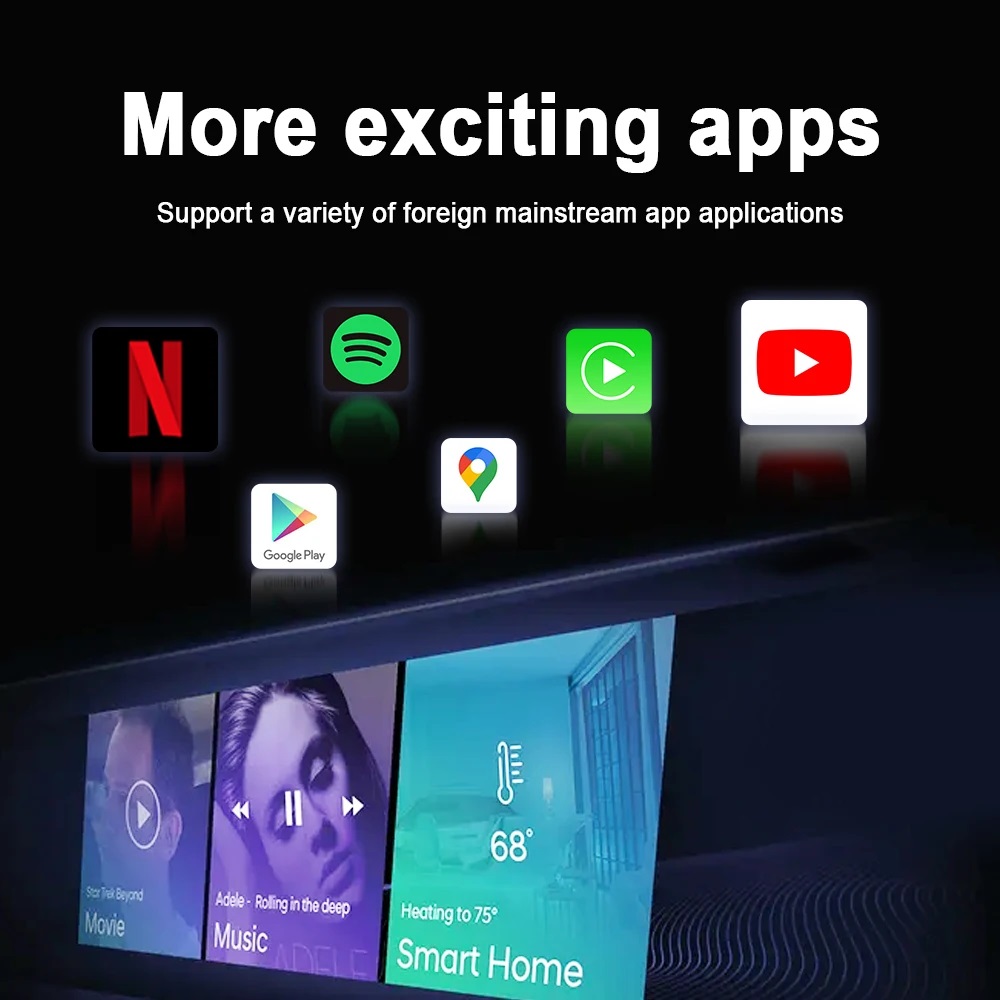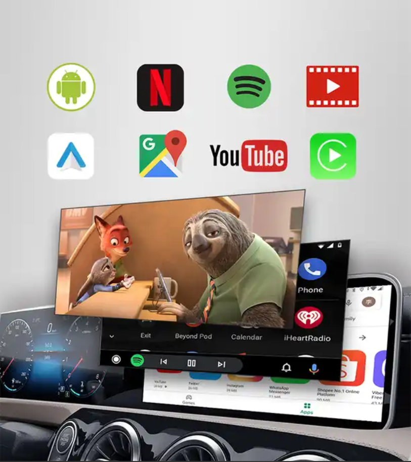 Bu cihaz sayesinde mevcut CarPlay sisteminiz tamamen dönüşür ve aracınız adeta bir Android tablet haline gelir. YouTube, Netflix, TV, Spotify, Google Maps ve daha yüzlerce uygulamayı doğrudan araç ekranınızda kullanabilirsiniz.