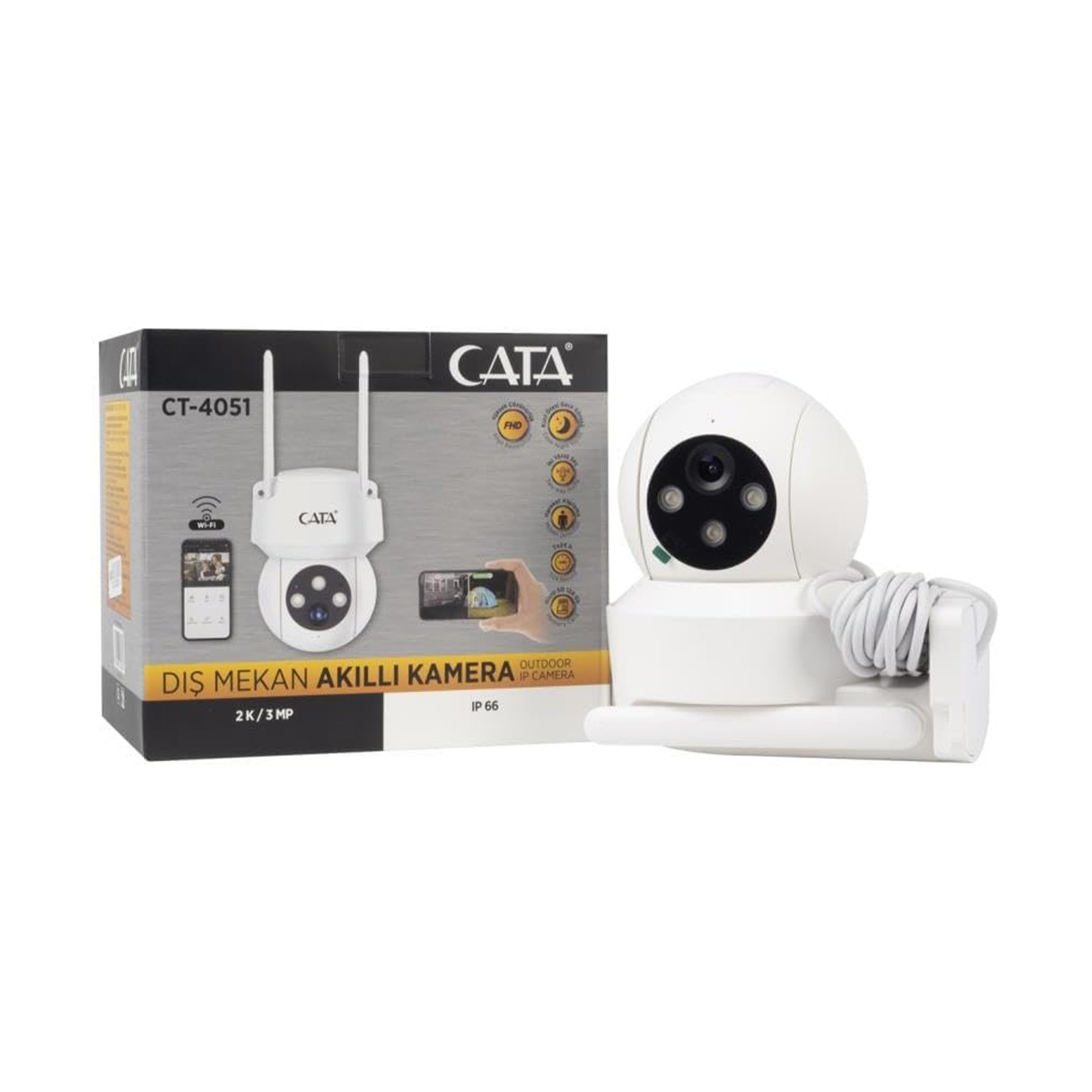 Cata CT-4051 Akıllı Dış Mekan Kamera, ev, işyeri, otopark ve bahçe güvenliğini maksimum seviyeye taşıyan 360° dönebilen, Full HD çözünürlüklü bir güvenlik kamerasıdır.
