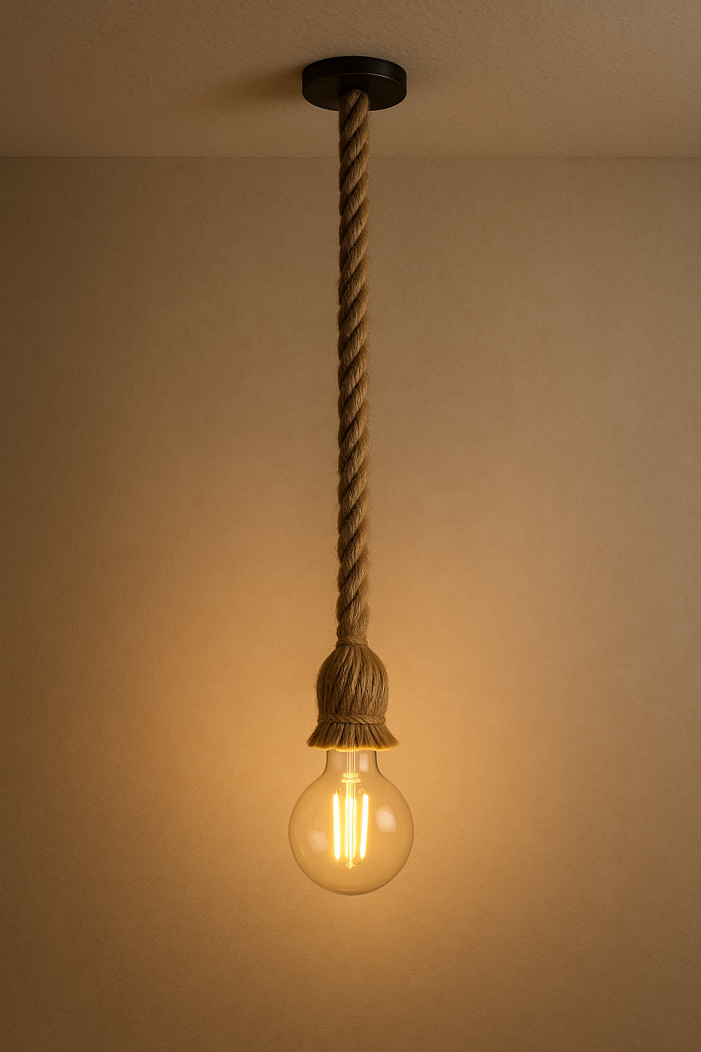 Dekoratif Halatlı E27 Tavan Lambası + LED G95 Glop Ampul – Sıcak Beyaz 6W