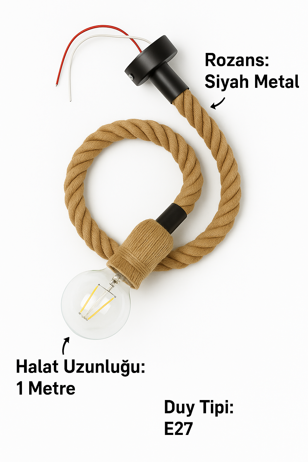 1 adet 1m halatlı E27 duy (montaj rozansı ile birlikte)