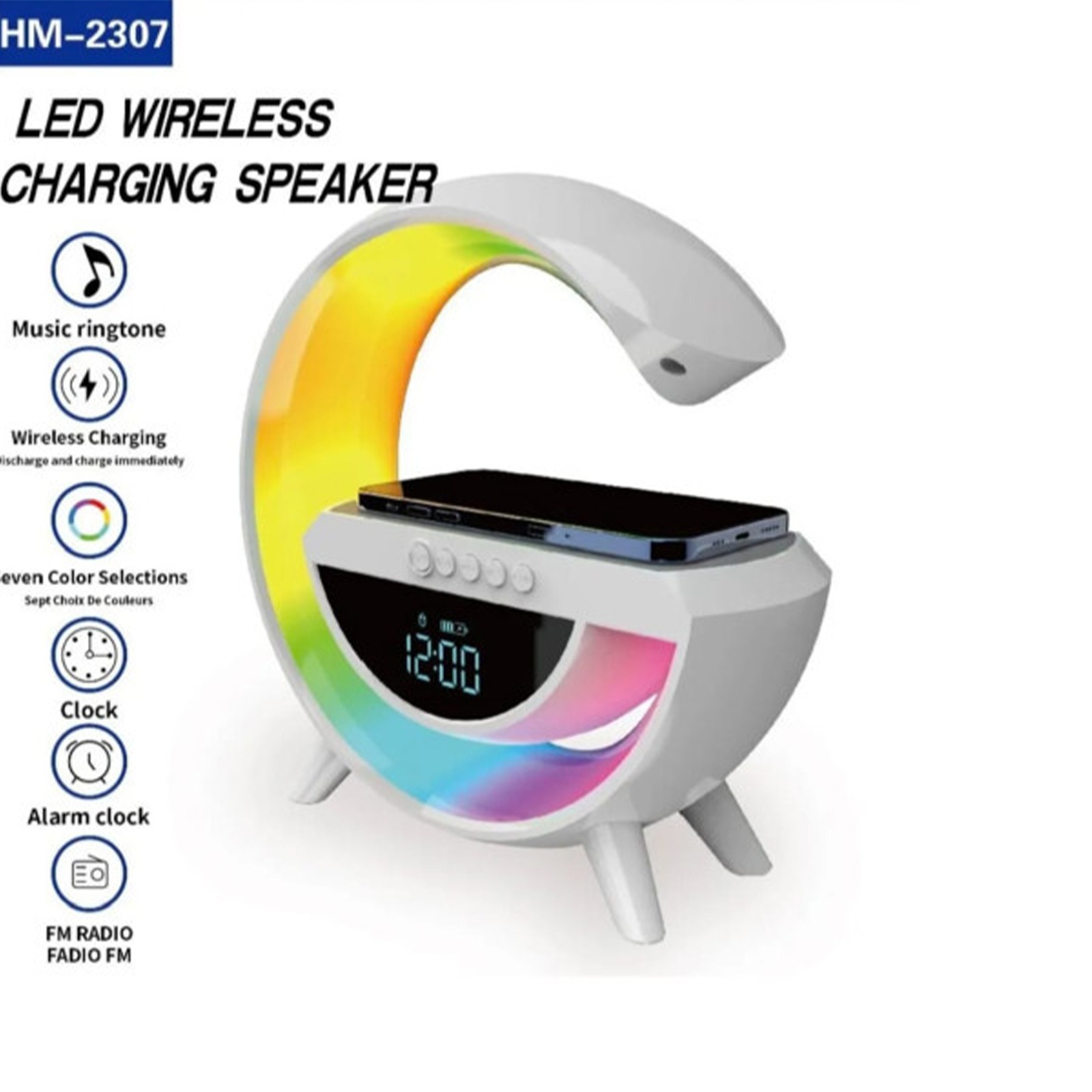 HM-2307 RGB LED Işıklı Bluetooth Kablosuz Taşınabilir Şarjlı Hoparlör – Dijital Saat ve Alarm Radyo