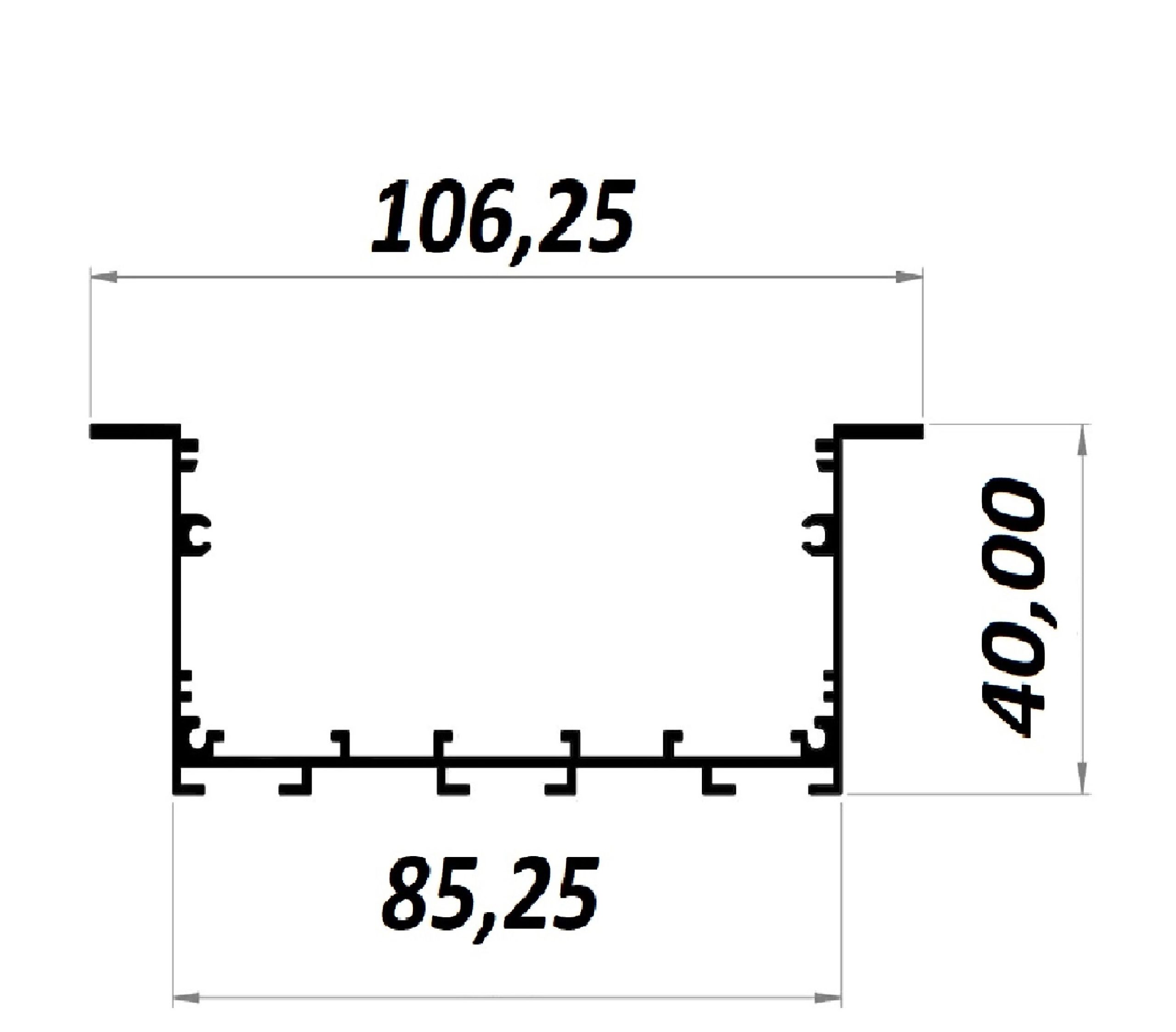 Boyut: 106,25 mm genişlik × 40 mm yükseklik, iç açıklık 85,25 mm