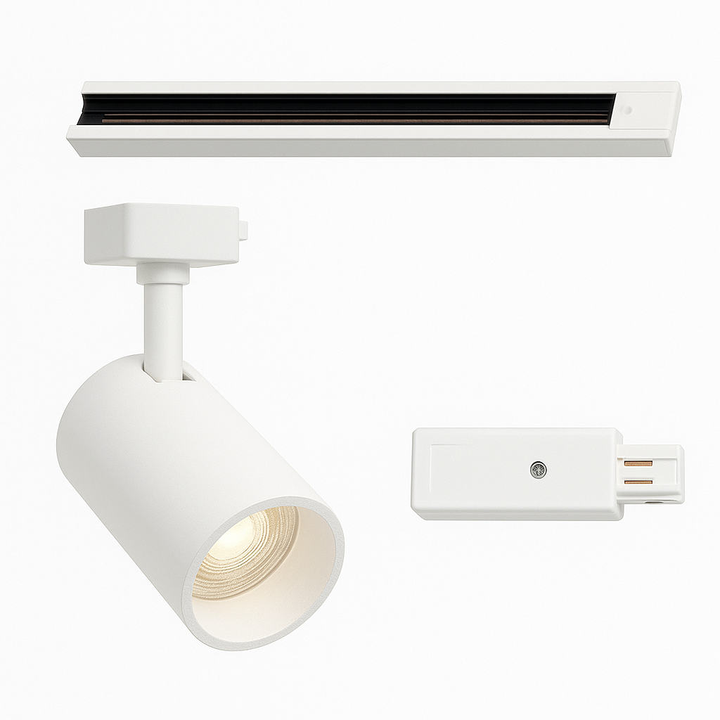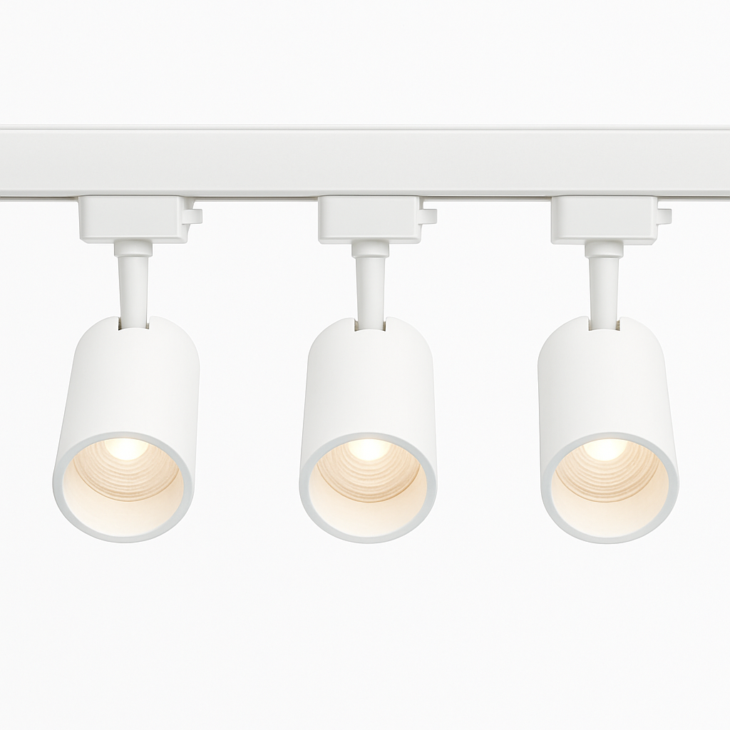 Modern Raylı 3′lü Beyaz Spot Lamba – Beyaz Gövde, 1m Raylı Ampulsüz Aydınlatma Sistemi