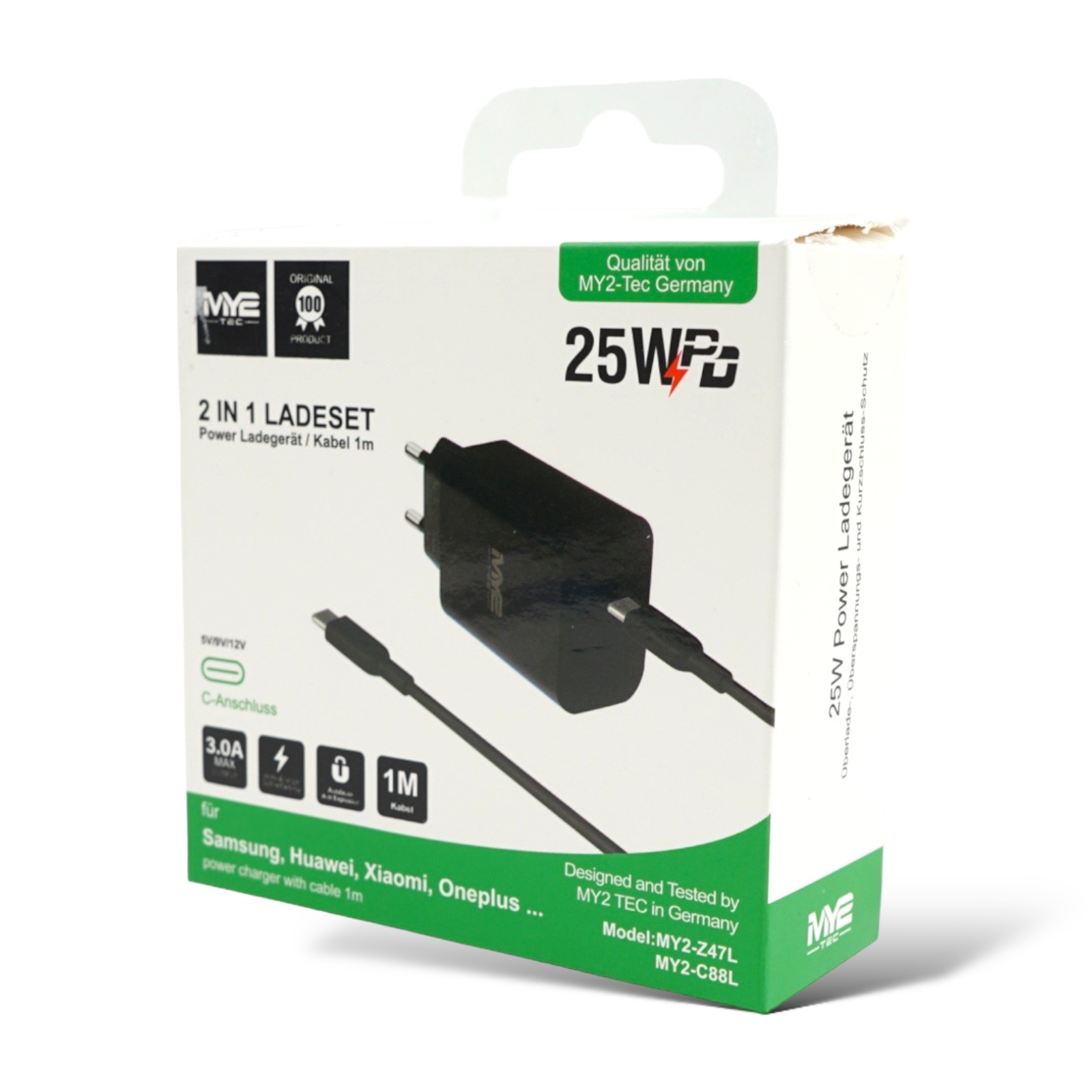 “MY2 Tec 2’si 1 arada şarj seti IPhone 15 Samsung Huawei Xiaomi Oneplus USB-C için şarj kablosu siyah 25W 3A 100cm” için yorum yapan ilk kişi siz olun Yanıtı iptal et