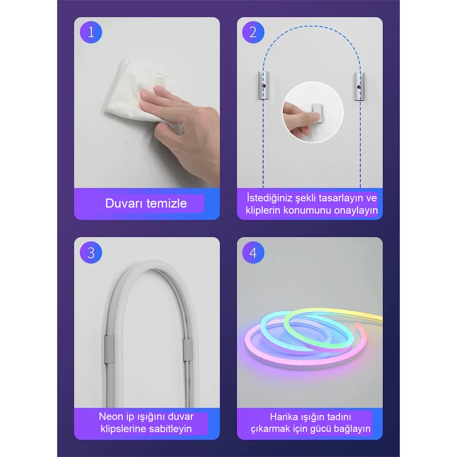 Neon LED şerit bantları kullanarak etkileyici dekorasyonlar yaratın.